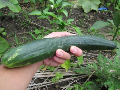 金曜日は、まだ小さくて収穫出来ませんでしたが、週末の間にたくさんの雨から水分を吸収し、大きなキュウリが実ったようです。