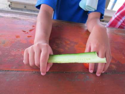 収穫したての新鮮なキュウリなので表面のトゲトゲが透明でした。