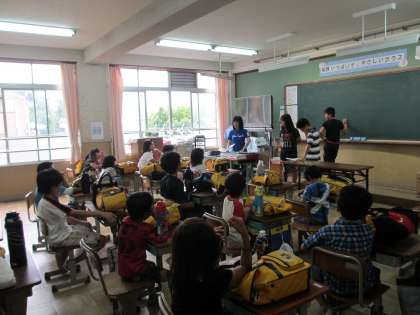最後に夏休み中のラジオ体操について確認して,ラジオ体操第一を練習しました。