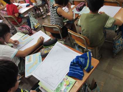 今日の4時間目,3年1組も2組も社会の授業をしました。