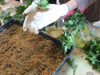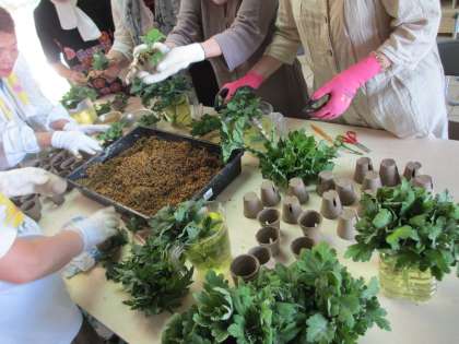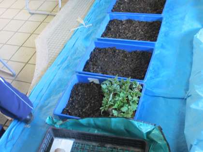 今年も三年生が菊を育てます。今年は,女性会の方々にも,手伝っていただきます。