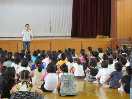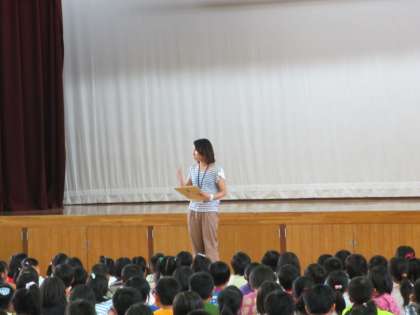 次に山内先生から歯の表彰の話がありました。最後に,佐々木先生から自転車の乗り方など安全についての話がありました。