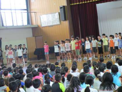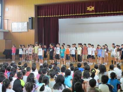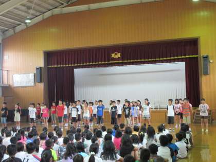 朝会の後は,6年生の音読発表会がありました。狂言の音読をしました。