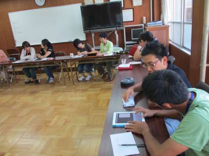 午前中は,10時から4校研修会を行いました。前半は,体育館で全体会を行い,後半は4つの分散会に分かれて話し合いを行いました。