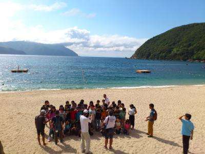 カッターが終わり,昼食です。昼食後,浜辺で集合写真を撮りました。
