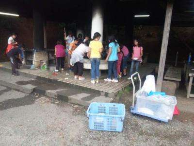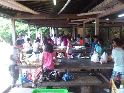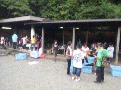 野外炊事です。後片づけも協力してしました。