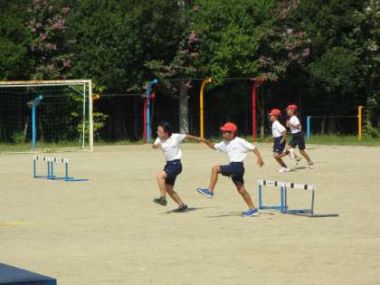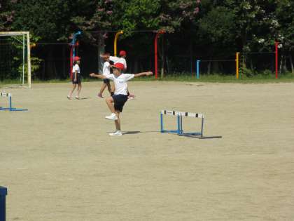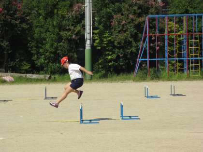 1時間目にハードル走をしました。少しずつ上手に跳べるようになっています。