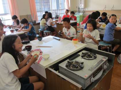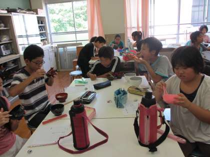 6年生は食育で,ジャポニカ米とインディカ米とを食べ比べてみました。