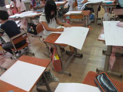 6時間目,4年1組は図工で人物のデッサンをしました。4年2組は全校ダンスの練習をしました。