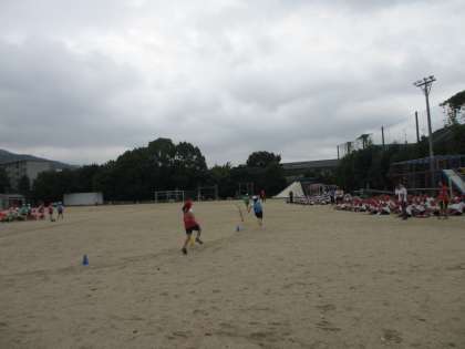 中学年は,低学年よりリレーに慣れているので,コーナーの回り方やバトンの渡し方が上手にできていました。