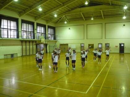 今日は準備運動の隊形練習をした後,