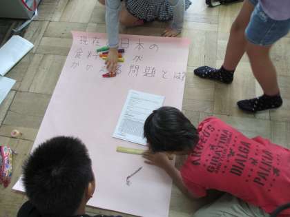 1時間目に,5年2組は社会の学習をしました。日本の食料生産の課題などについて,調べてまとめています。