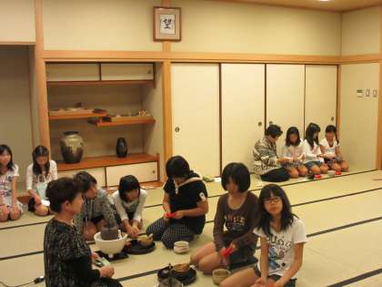 隔週の月曜日に,ふれあいサロンで茶道部の活動をしています。ふくささばきだけでなく,お盆手前を練習している人もいます。