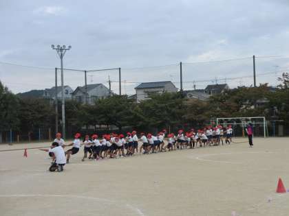 今日は,エントリー種目の練習をしました。最初に綱引きをしました。1回戦は,白の勝ちでした。でも,2回戦と3回戦が赤の勝ちだったので,今日の結果は赤の勝ちとなりました。