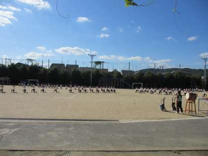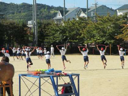 5時間目に,3・4年生は団体演技の練習をしました。最初,四方から出てきて踊ります。縦に並んで踊る時もあります。
