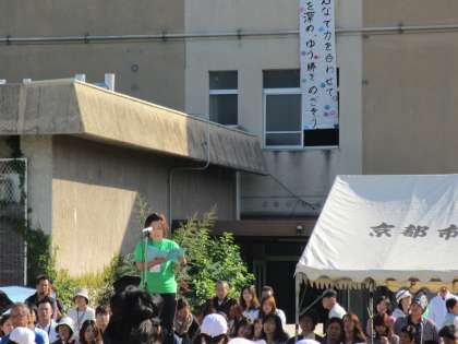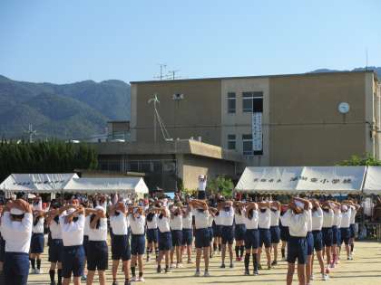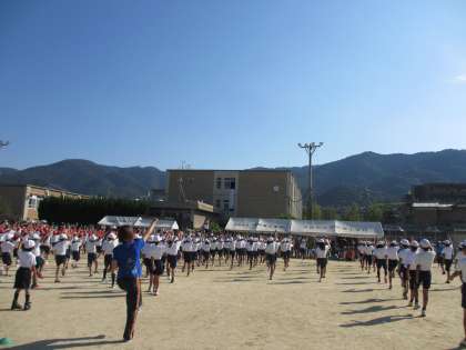 諸注意の後は,準備運動の全校ダンスをしました。