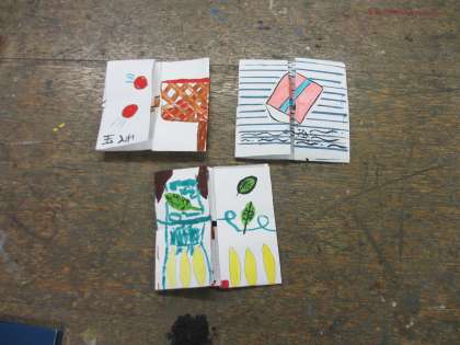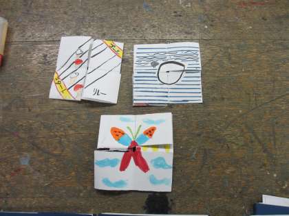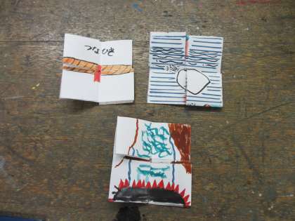 今日は,先週と同じ変わり絵カードを作りました。先週の続きをしている人・2つ目を作っている人などいました。