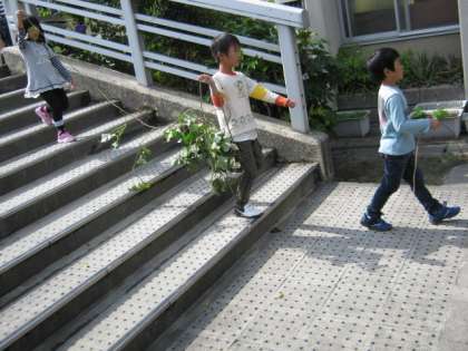 3時間目に1年生は,生活科の学習で,サツマイモを掘りました。たくさん収穫できたかな?