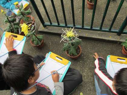 3年生は5時間目に菊の観察をしました。花が大きく育っている人・つぼみができている人・細い花びらの菊が咲いている人などなど・・・