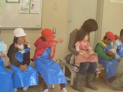 子ども達も大喜び。1.2年が仲良く協力してウォークラリーをしながら