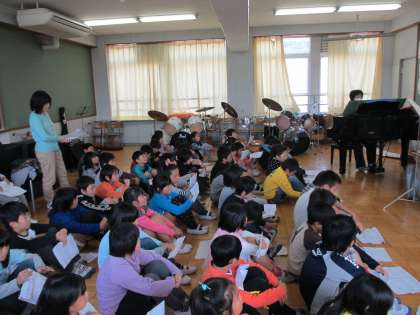 3年生は,4時間目に音楽室で音楽をしました。歌の練習を頑張っています。