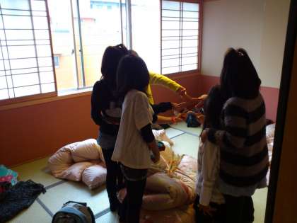 朝食後,部屋の掃除と荷物の整理をしました。早く終わったところは,部屋でゆっくりしています。