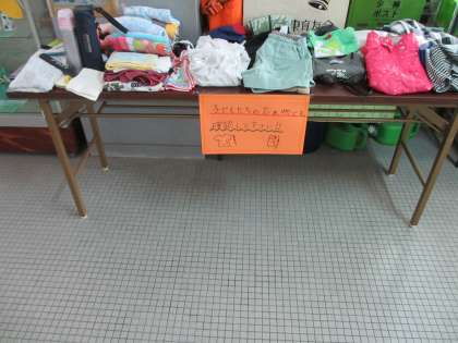 子ども達の忘れ物や落とし物を展示していますので,ご覧ください。