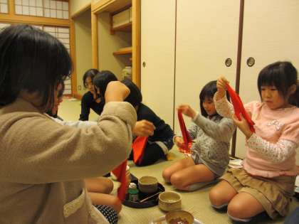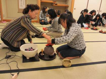 茶道部は,今週が活動日です。ふくささばきやお手前の仕方など,練習しています。