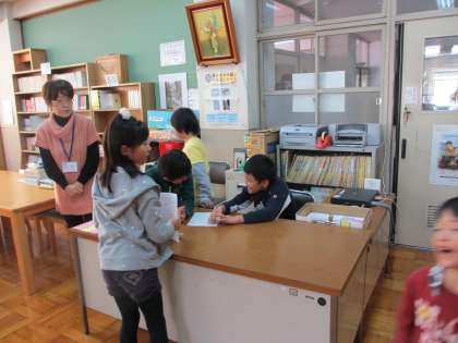 今日の昼休みに,図書室で「低学年・図書室クイズ」を行いました。