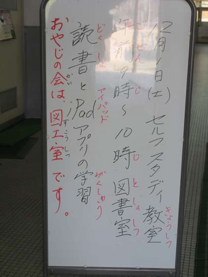次回は,16日(日)の午後1時から2時までです。場所は,図書室です。