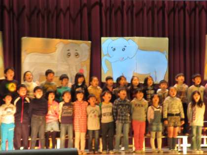 三番目に,3年生の「ぞうれっしゃがやってきた」のリハーサルを行いました。