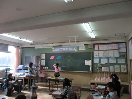 4年1組は,4時間目に算数の学習をしました。図形の描きかたを考えました。