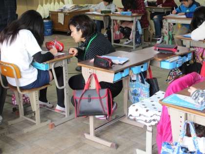 今日から採用前研修に来られた野村真理菜先生が,授業を参観されていました。