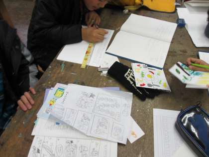 火曜日の放課後は,美術部の活動日です。今日から,絵本を作りますので,どんな場面にするか考えました。