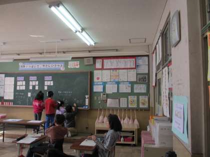 4時間目に4年1組は,算数の学習でした。2組は,音楽の学習でした。