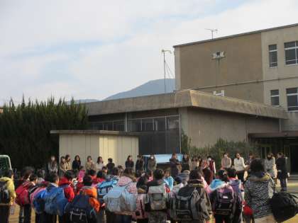 4年生は,運動場に集合し,8時40分から出発式を行いました。