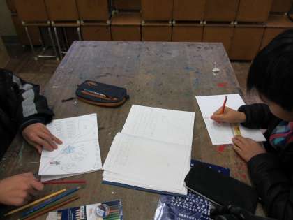 今日は,美術部の活動日です。絵本作りの続きをしました。