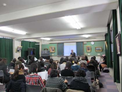 来年入学予定の41名の子ども達は,二つの教室に分かれて,歌ったり絵を描いたりして過ごしました。おうちの方々には,多目的室で,講演や話を聴いていただきました。