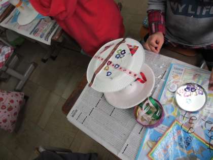 1年1組は,4時間目に図工の学習をしました。コロコロころがる工作を作っています。
