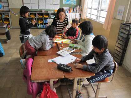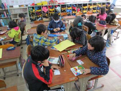 一人一人が書いたメッセージカードを色画用紙に貼り,綺麗に色を塗ったり絵を描いたりしました。