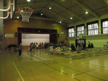 4年生は,体育館で「今まで学習したこと」の発表を見ていただきました。