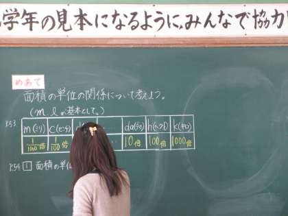 6年1組は,3時間目に算数の学習をしました。単位について復習をしました。