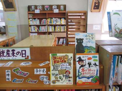 3月らしい飾り付けや本の紹介をしています。どんどんと図書室に来てください!