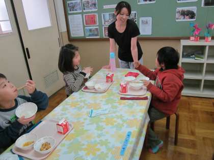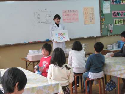 みんなが食べ終わると外園先生に栄養に関する紙芝居を読んでいただきました。