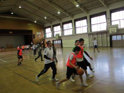 バスケットボール部の活動も,12日が最後です。教職員との試合を行いました。