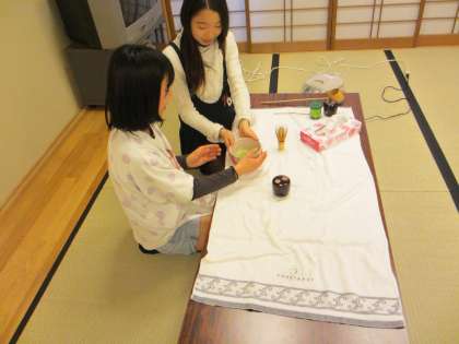 茶道部は今日が最後の活動日でした。おいしいお菓子を頂きました。教えていただいている先生方にお礼のお手紙を渡しました。
