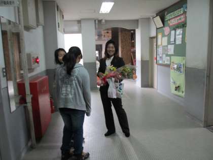 本日9時から離任式を行いました。大木先生・大口先生・佐々木先生・角谷先生とお別れしました。式の後も,なごりを惜しんでいました。