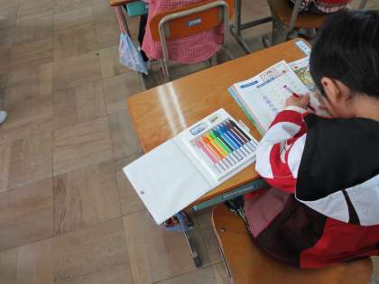 2時間目に,1年1組は算数をしました。数のおけいこです。