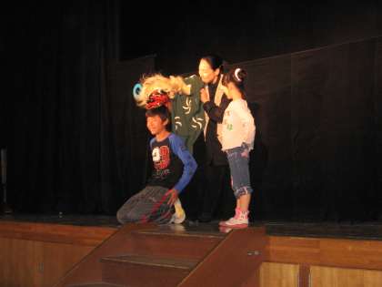 文化庁主催の「本物の舞台芸術体験事業」に応募して「ガイ氏即興人形劇場」に当選し,本日オータム劇場として上演することができました。事前にワークショップで指導を受けた3年生児童の代表が4人一組で玉人形を演じる場面もありました。この事業は児童に優れた舞台芸術を鑑賞するだけでなく本物の舞台芸術を体験して芸術を愛する心情を育てることをねらいとしています。そのため,事前に3年生全員が玉人形の指導を受けました。第1部の「人形ファンタジー」では,「かっぱのガイちゃん」がとても愉快な挨拶をしてくれたり,獅子の人形にかしこくなるおまじないをしてもらう一幕もあり子どもたちにとても人気でした。第2部の「ごんぎつね」は情景も豊かで,最後にごんが鉄砲で打たれて死ぬところでは涙ぐむ児童もいました。