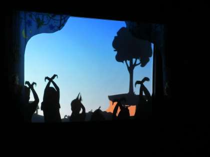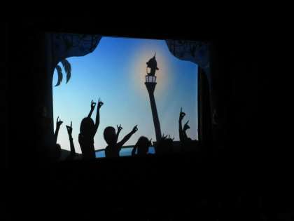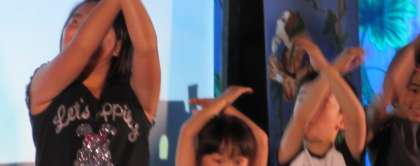 「光と影の手遊び」では,代表の子ども達が前に出てきて,実際に手遊びをしてみました。